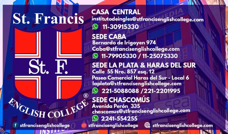 Debes comunicarte vía mail a institutodeingles@stfrancisenglishcollege.com para coordinar entrevista a través de nuestra oficina virtual. Te mostraremos nuestra forma de trabajo, te enseñaremos un poco más sobre nuestra institución y el abanico de oportunidades que ofrece nuestra marca registrada, avalada por la asociación de centros de idiomas. Saint Francis es OPEN CENTRE de ANGLIA y PATH International Examination, somos sede de preparación y exanimación Cambridge International Examinations.
